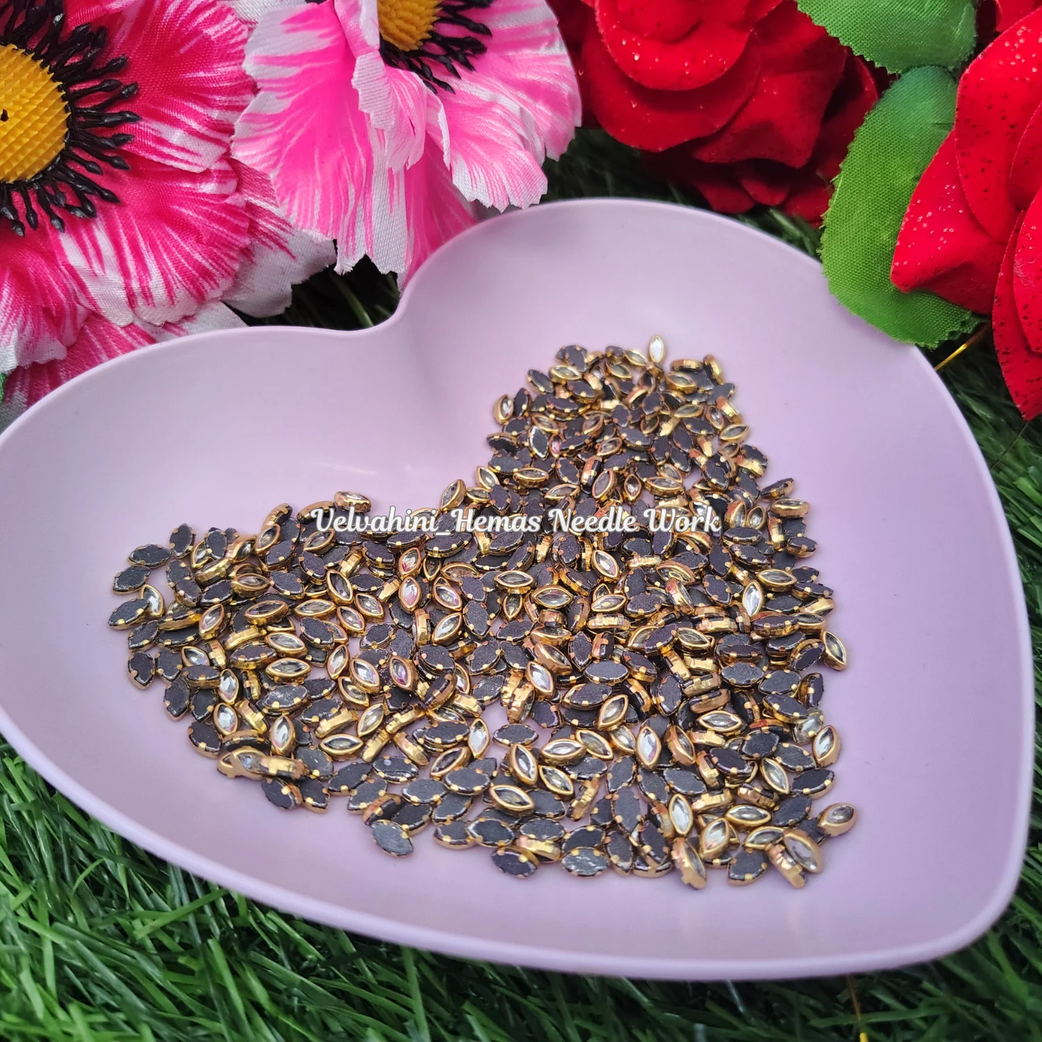 Eye shape Kundan stones perfect for aari work, blouse designs, jewellery making and craft decoration. Premium shine, durable finish and easy to fix on fabric or accessories.