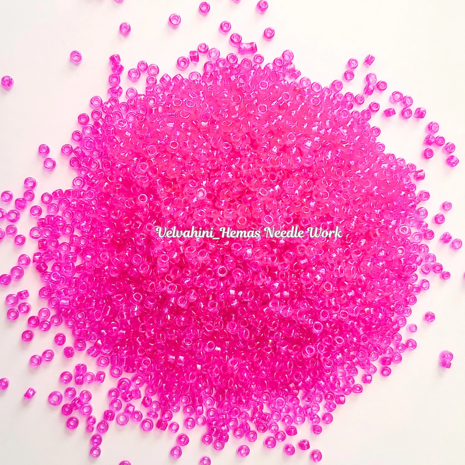 Glass sugar beads are small, shiny beads used in aari work to add sparkle and textured detail to fabric and embroidery designs.