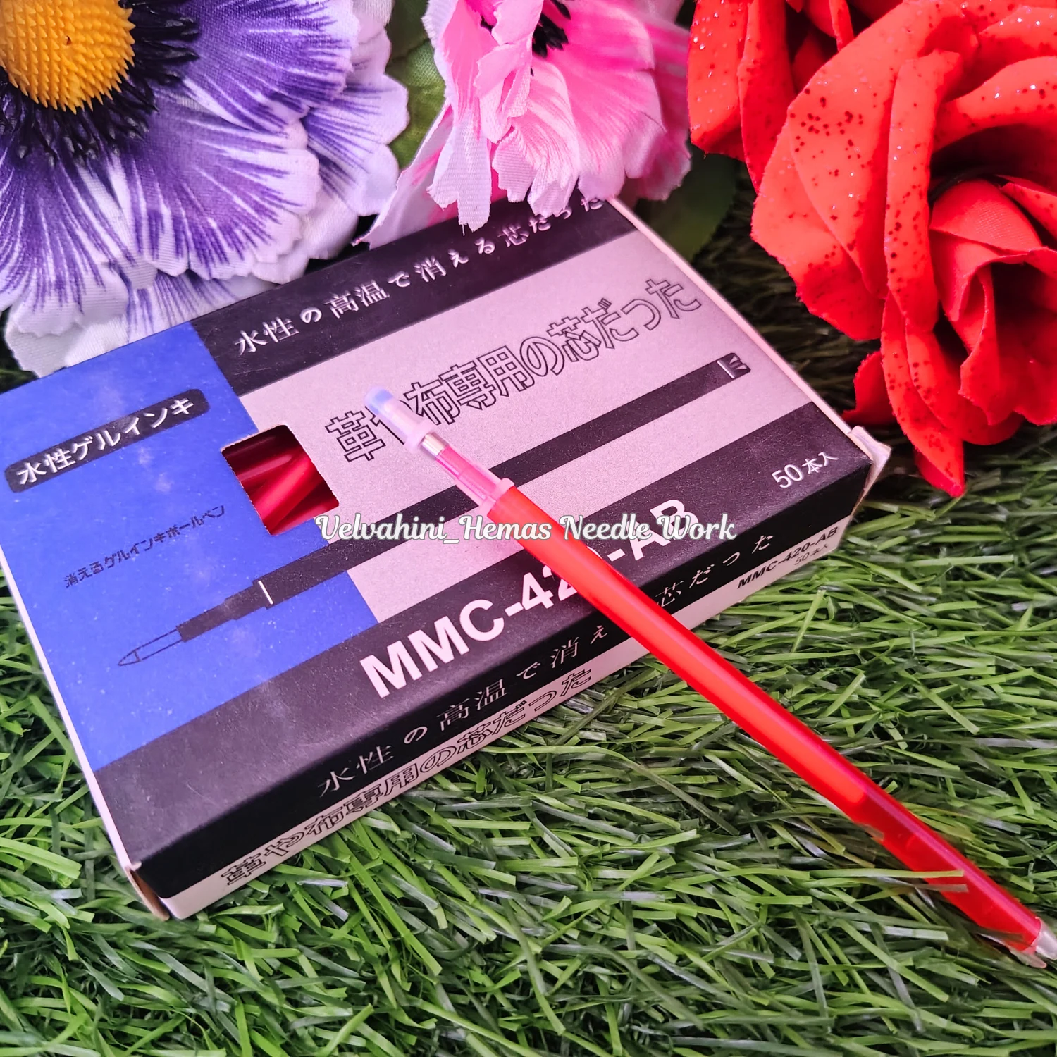 Heat erasable pen is used for temporary fabric marking in tailoring, embroidery, and aari work.