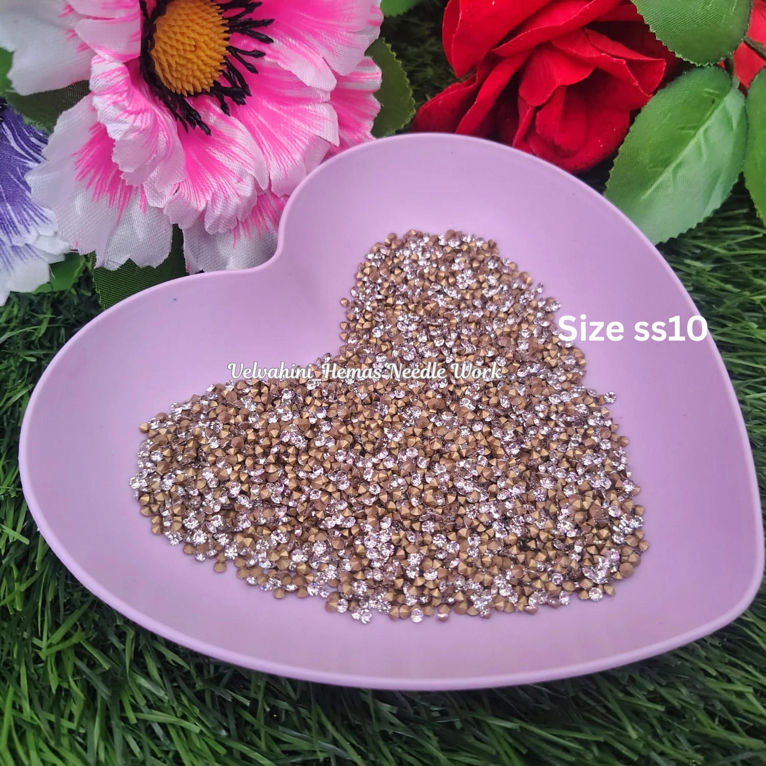 White Jarkan stone SS10 size is used for small size chakri designs to give a detailed and elegant look.