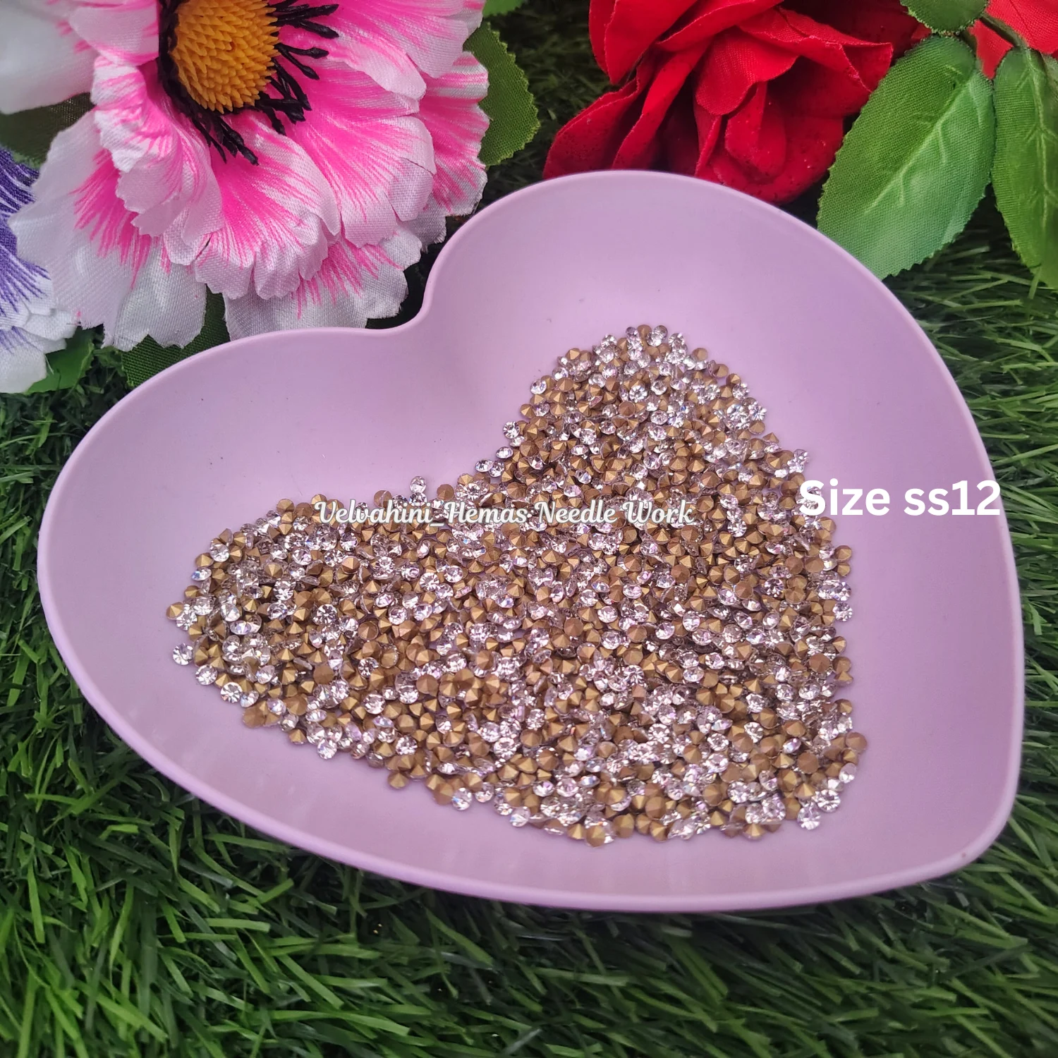 White Jarkan stone SS12 size is used for big size chakri designs to give a detailed and elegant look.