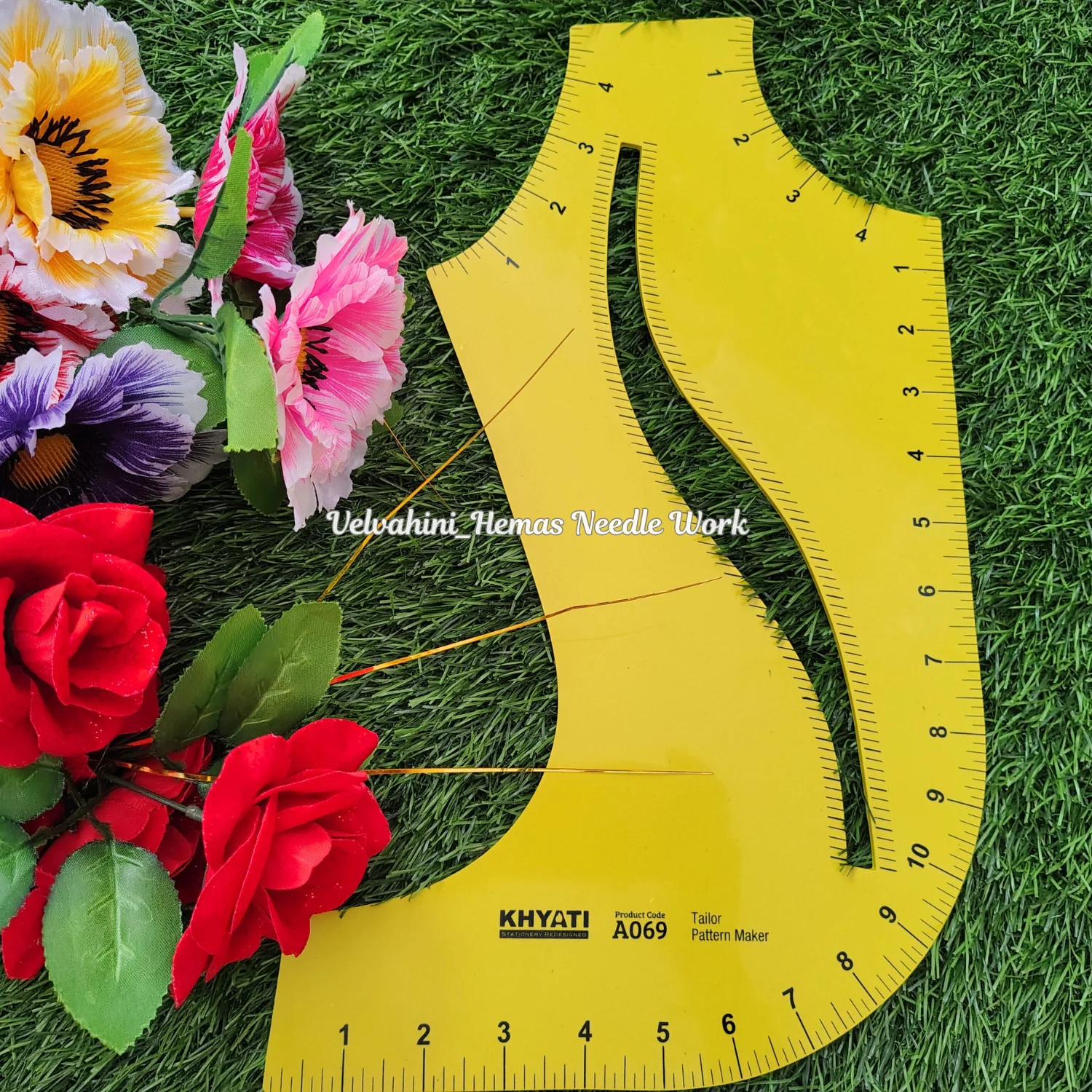 A pattern maker is a versatile drafting tool used in blouse construction to draw accurate necklines, sleeve curves, and straight lines. It helps maintain precision and symmetry in pattern making, ensuring a neat fit and professional finish.