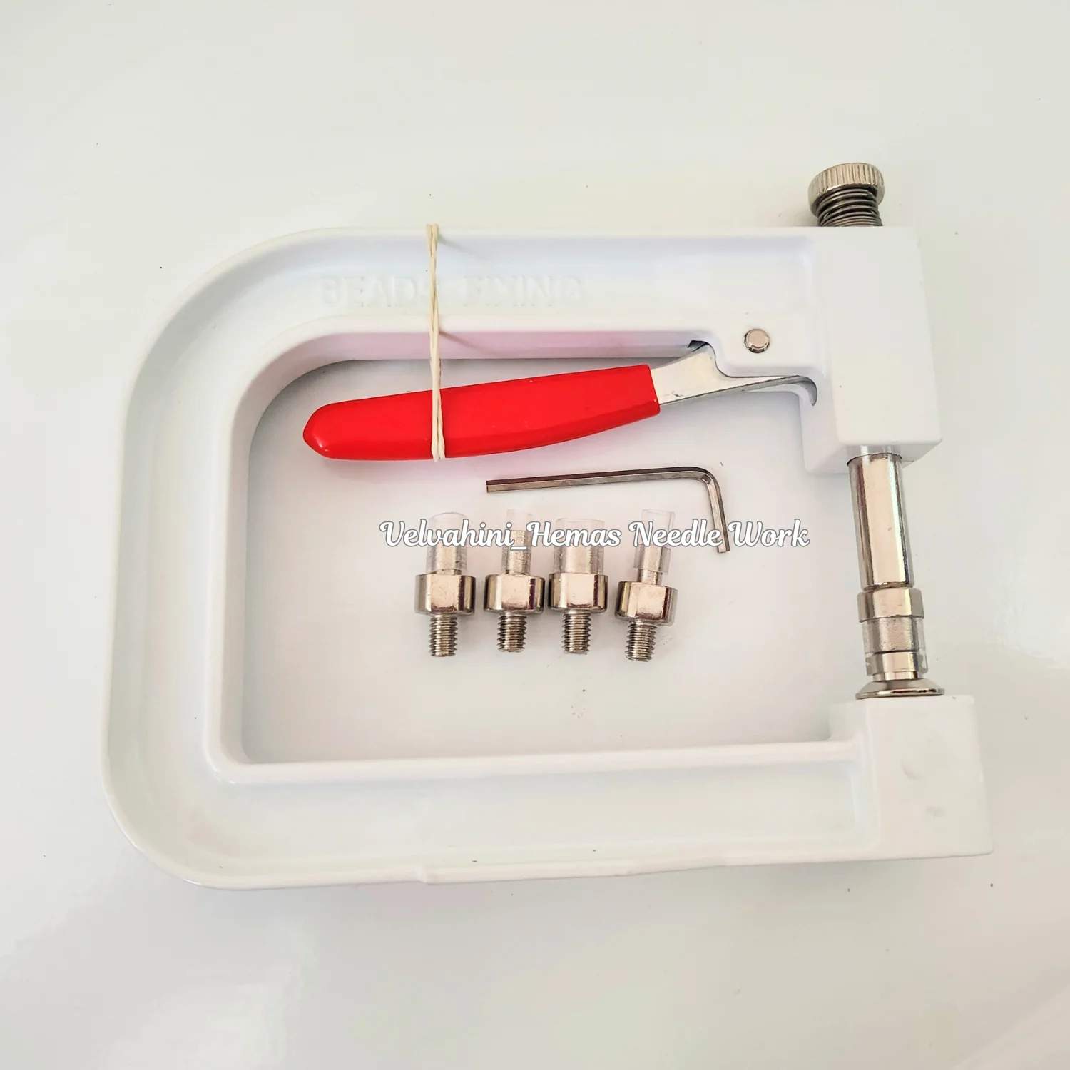 Pearl setting machine designed for quick and secure fixing of pearls and studs on fabric, ideal for aari work, tailoring, and decorative designs.