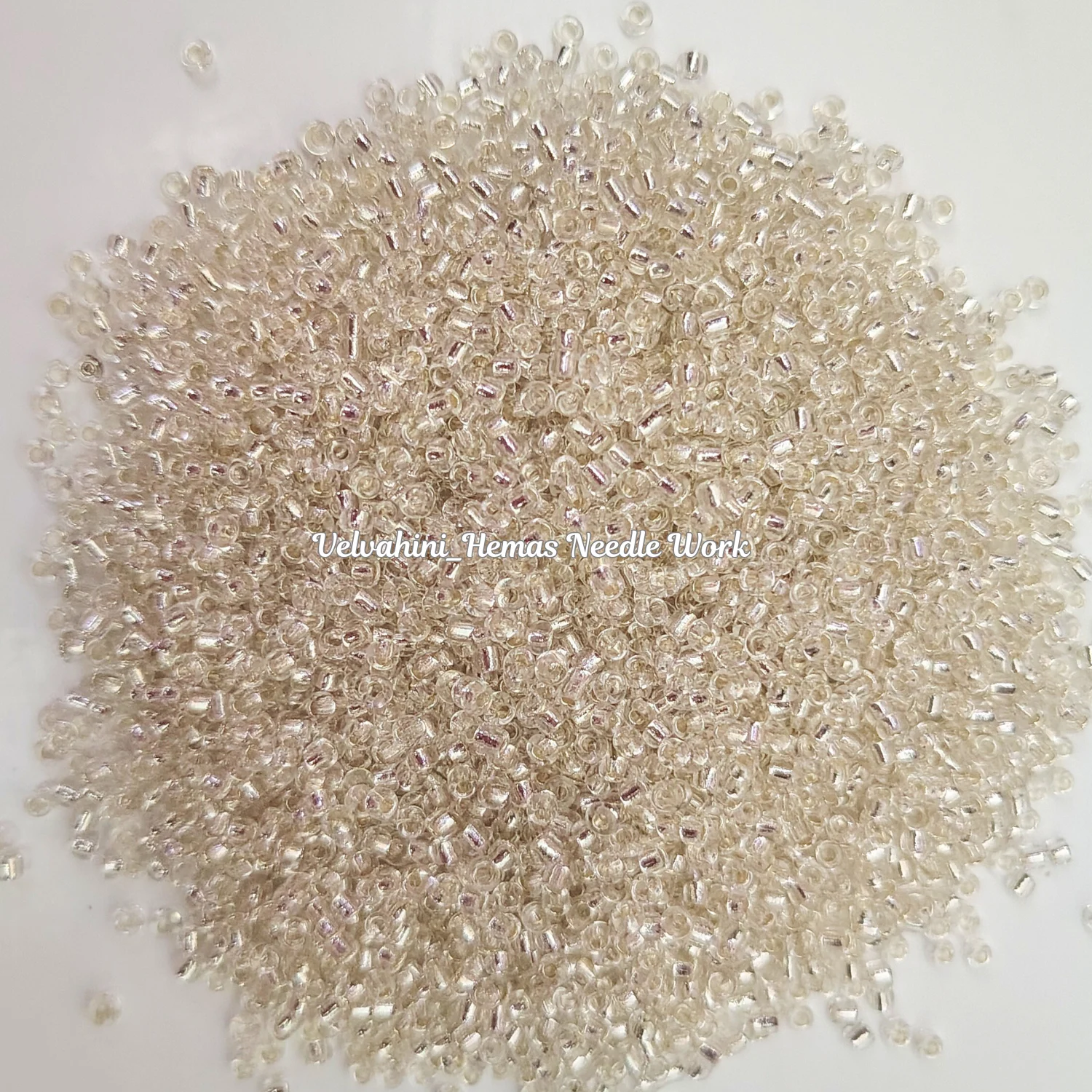 Premium glass sugar beads are small, shiny beads used in aari work to add sparkle and textured detail to fabric and embroidery designs.