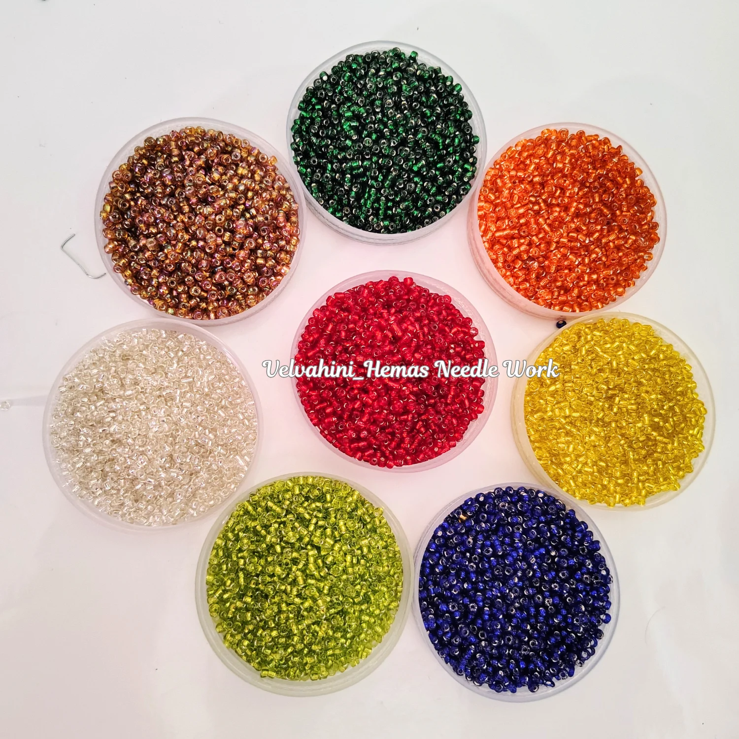 Premium Sugar Bead 8 Colour Combo includes eight vibrant colours of sugar beads, each 50 g, perfect for embellishing fabrics, accessories, and craft projects.