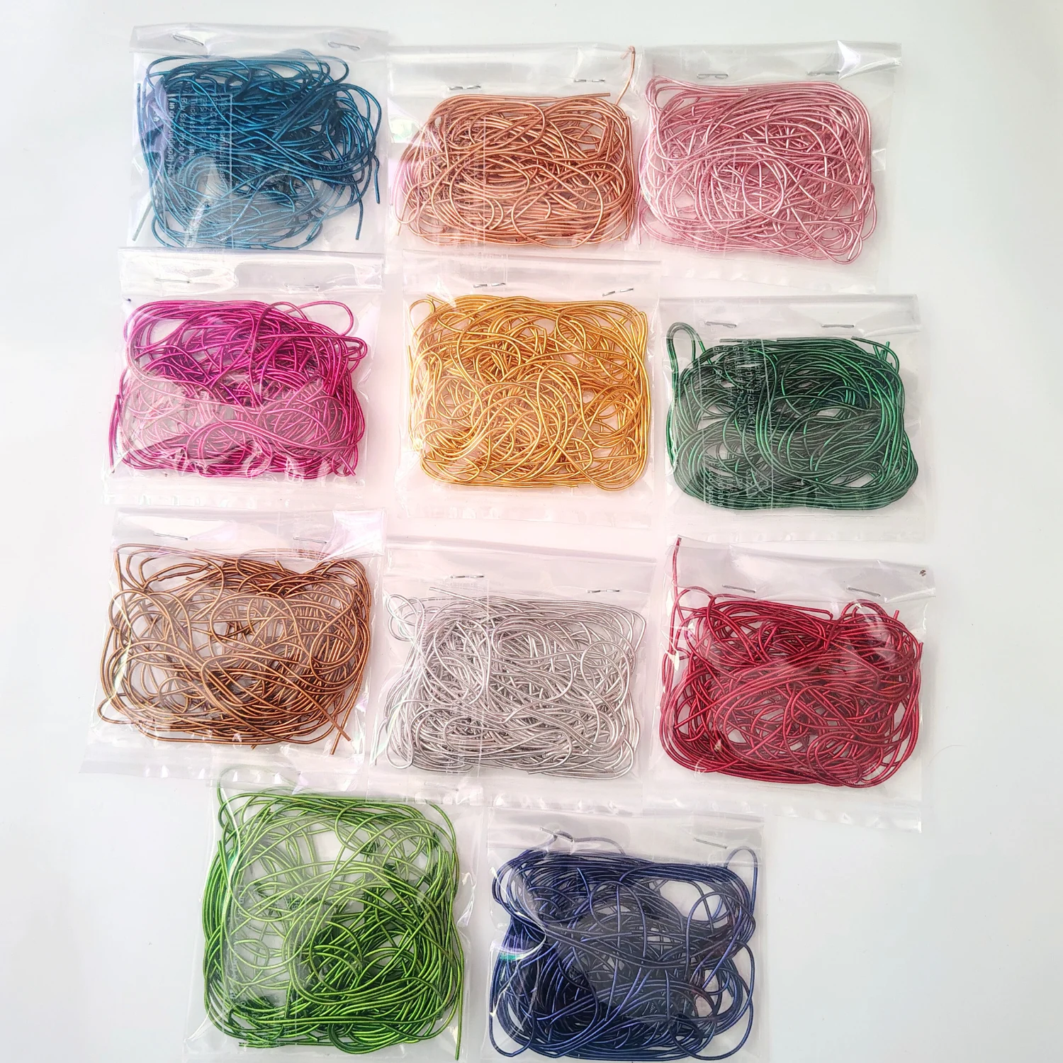 A set of 11 colourful zardosi metallic wires for embroidery and decorative craft work. Perfect for adding rich, shimmering accents to fabrics, garments, and handmade accessories.